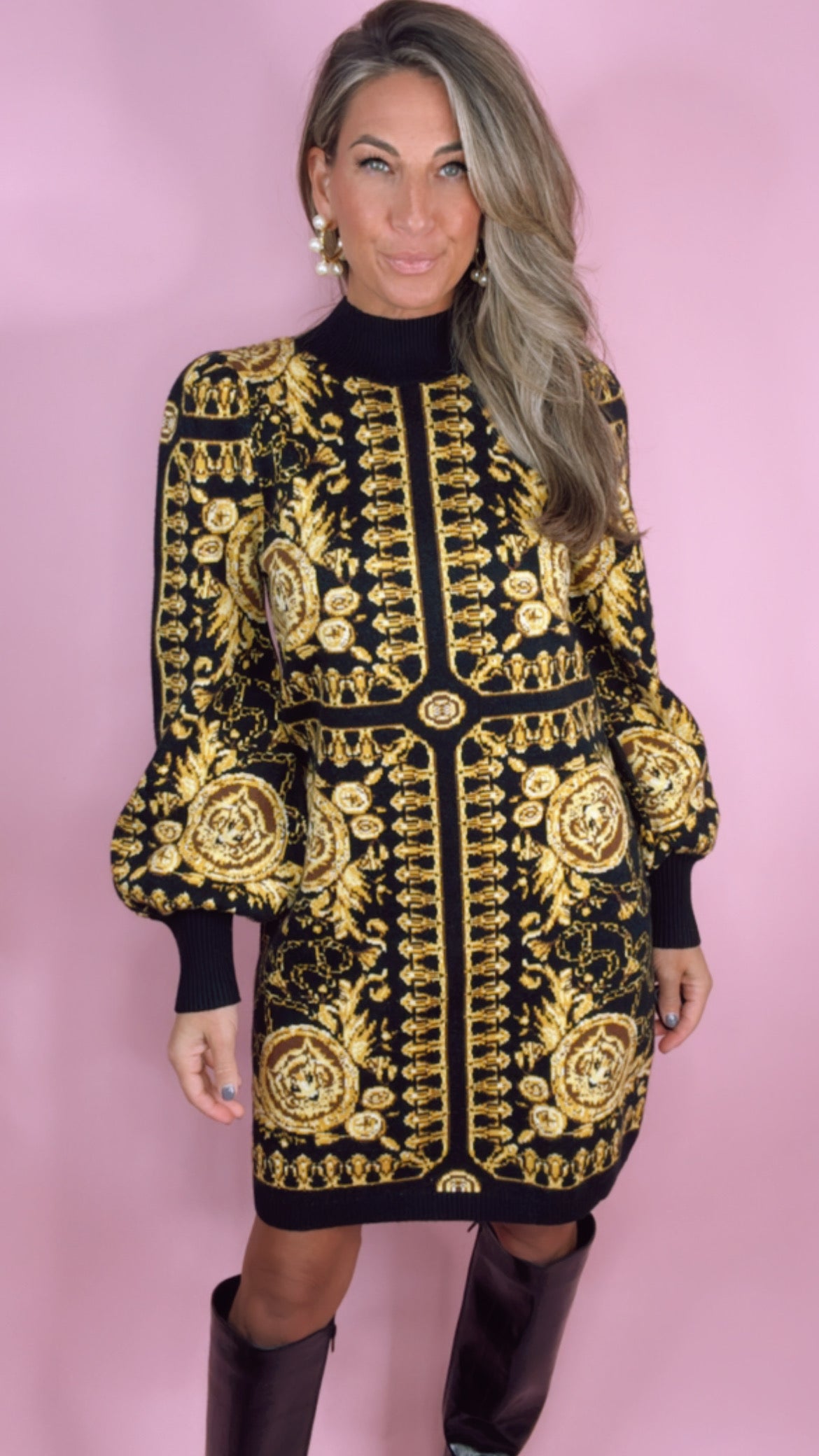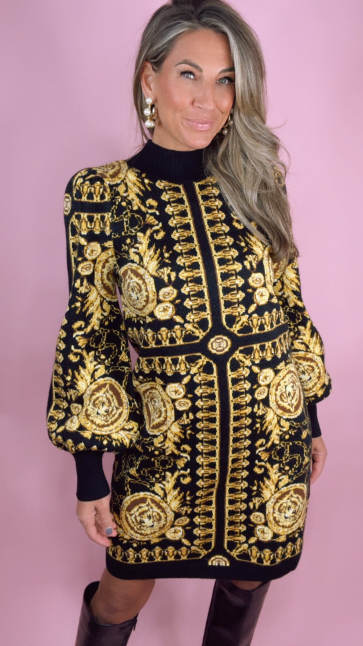 The Coco dress in Donatello dress is the perfect addition to your closet! This sweater dress is the perfect versatile dress that can be dressed up or dressed down to match any occasion.