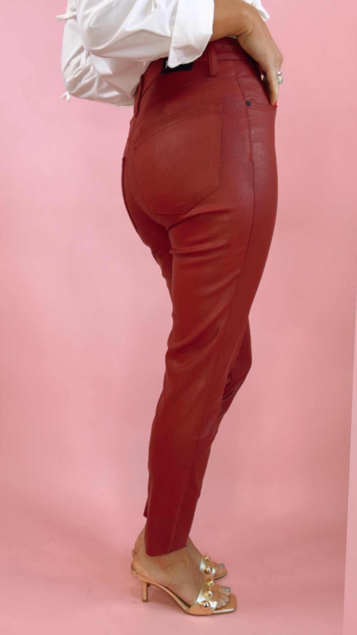 Kut Charlize Coated High Rise Ankle Skinny in Red
