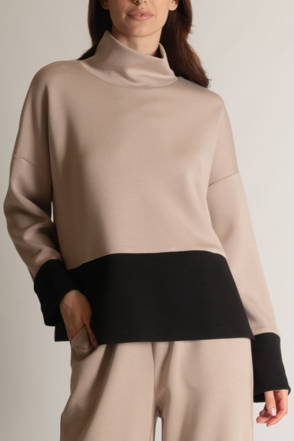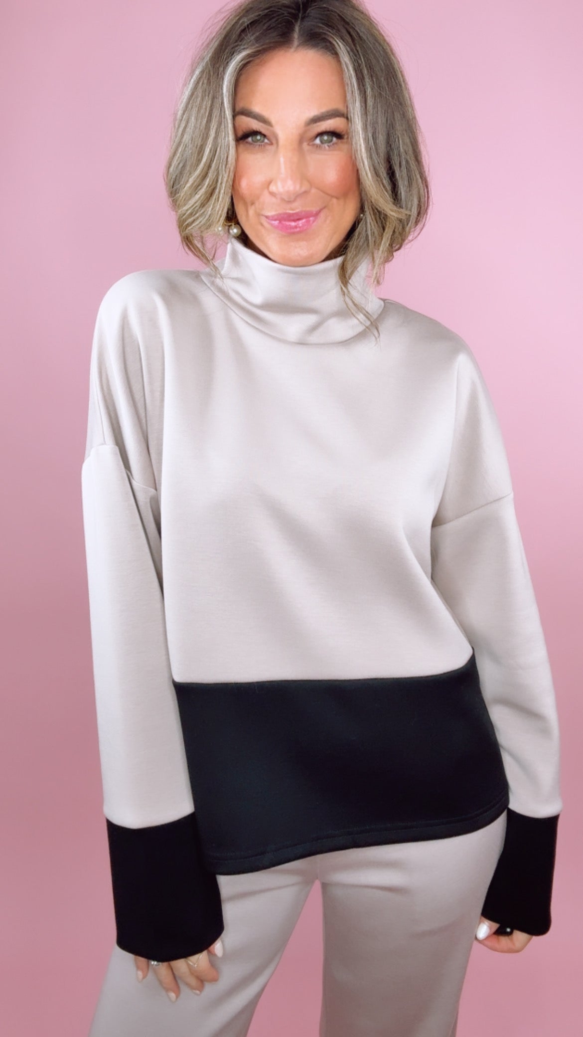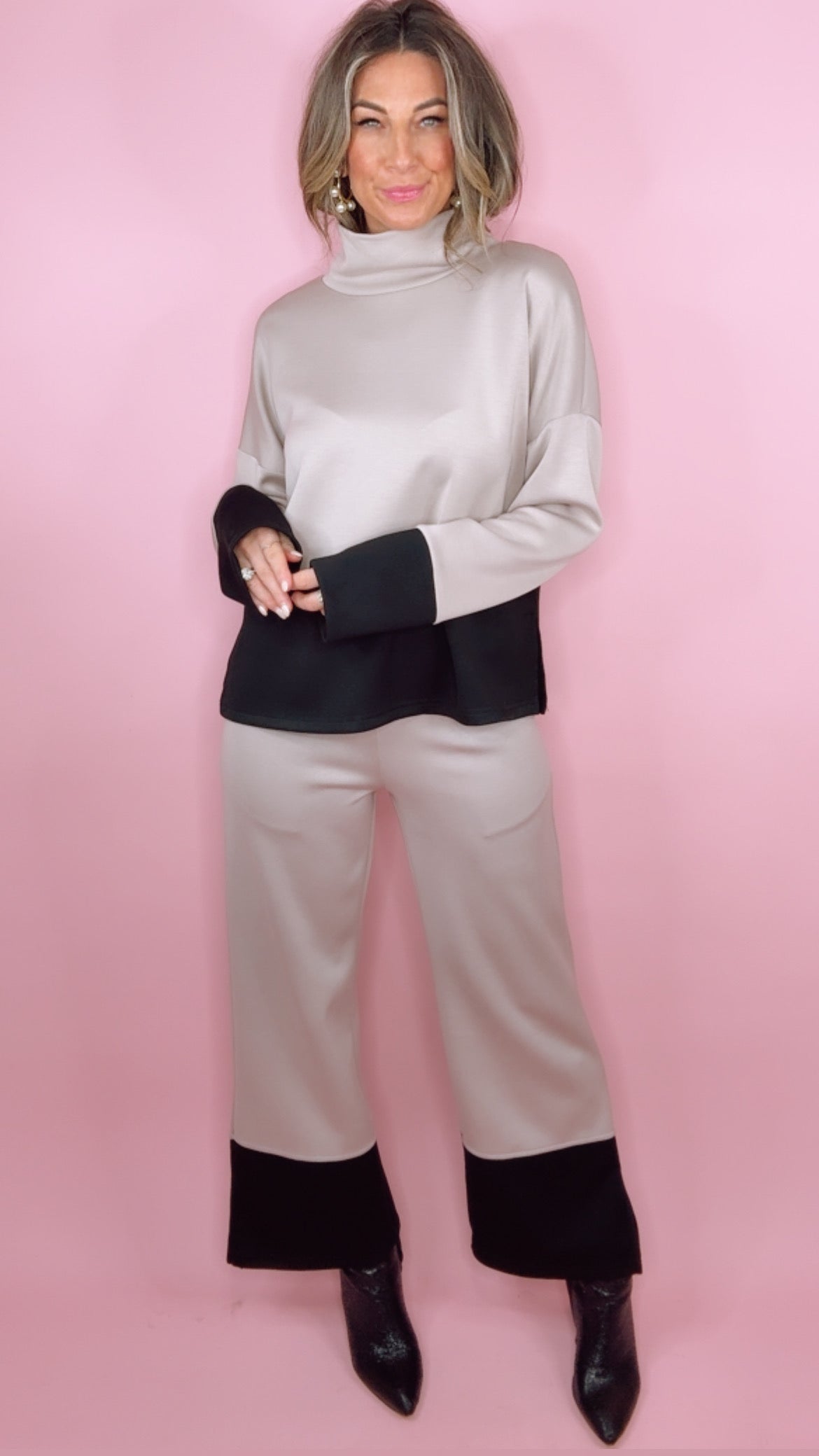 Taupe and Black Scuba Colorblock Mock Neck Set (1 XS)