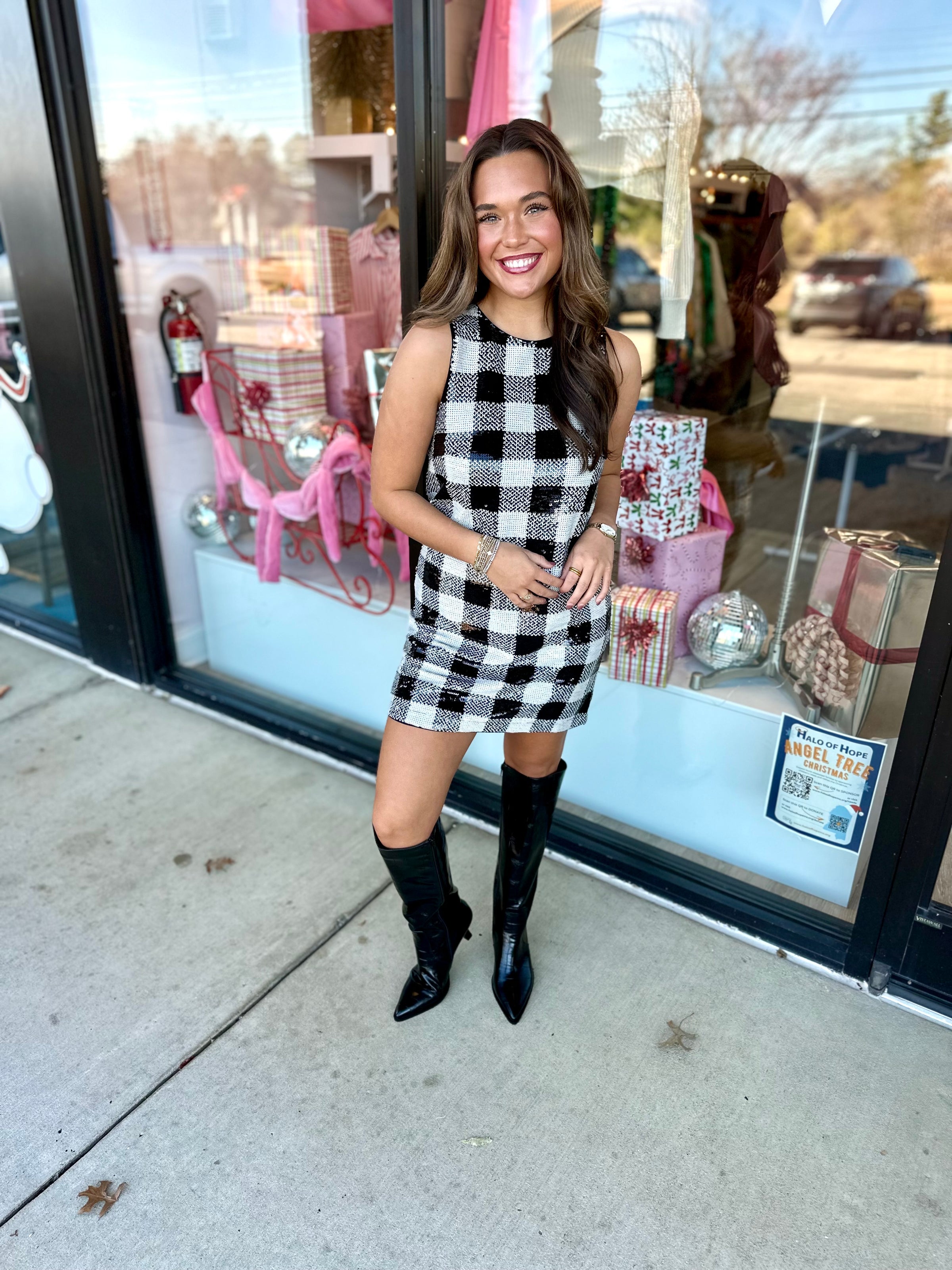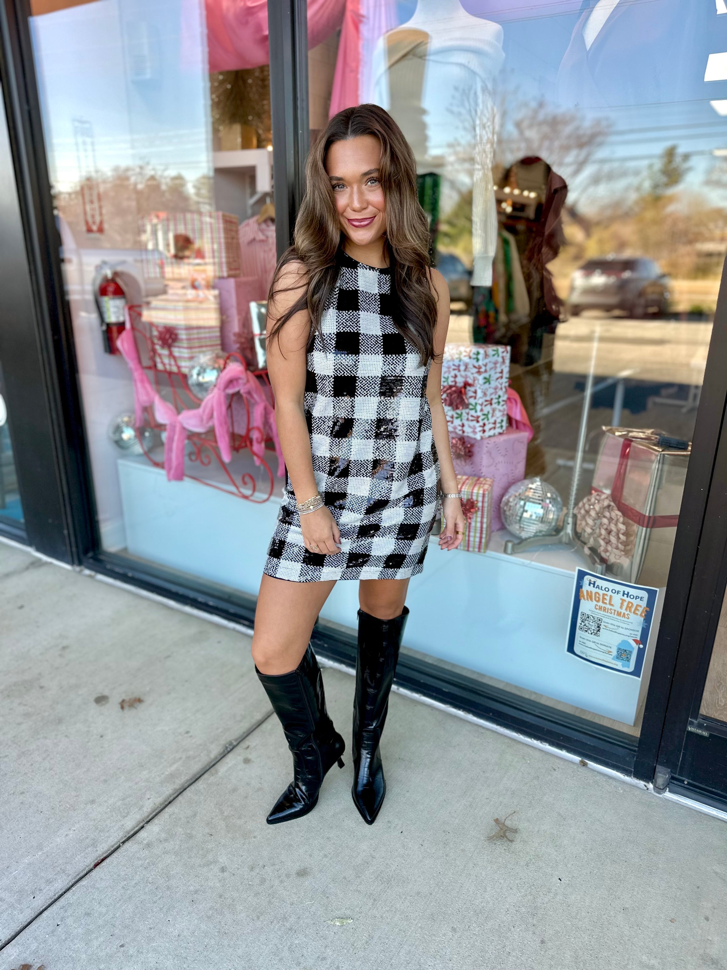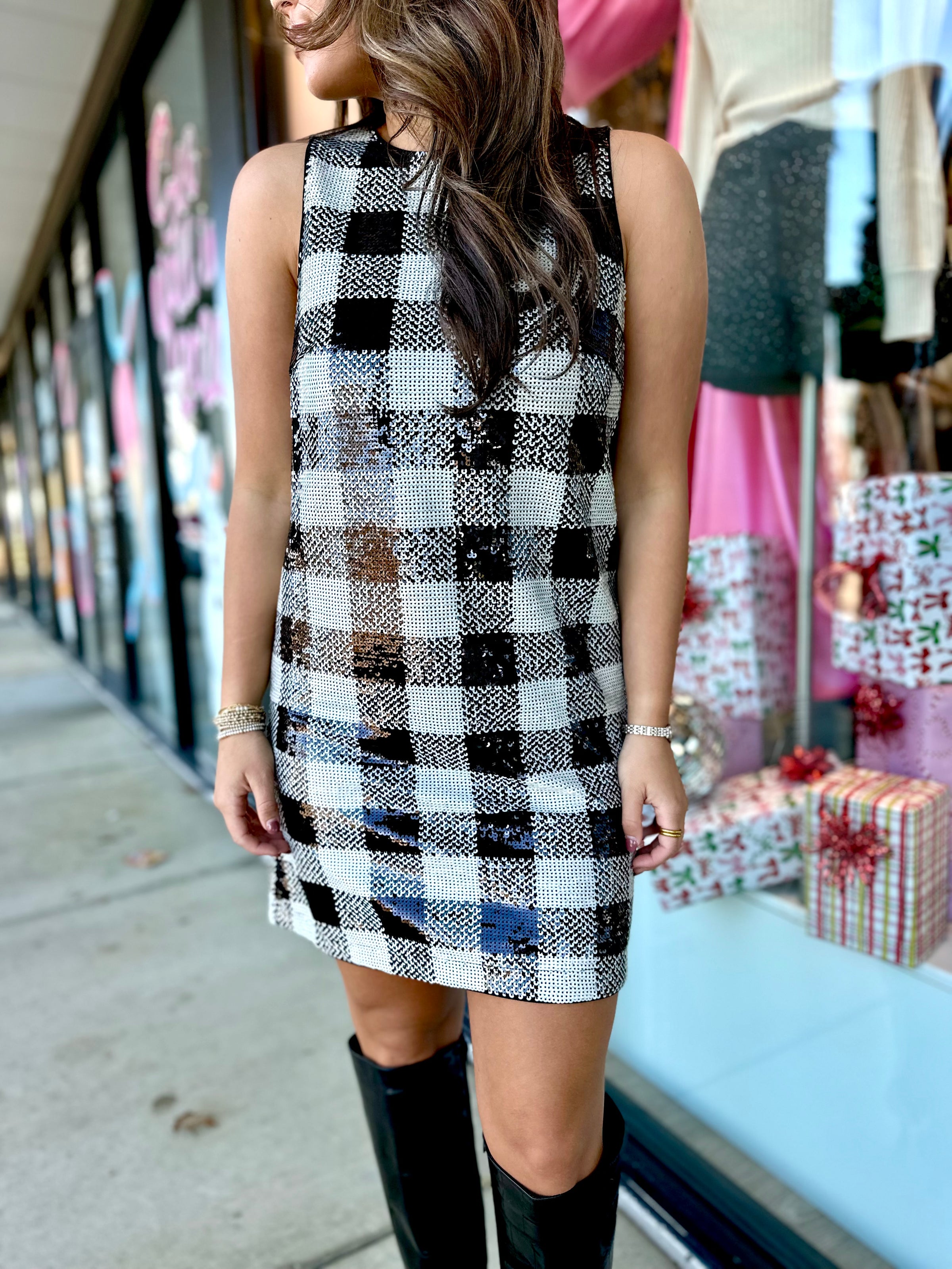 FRNCH Carra Checkered Sequin Dress