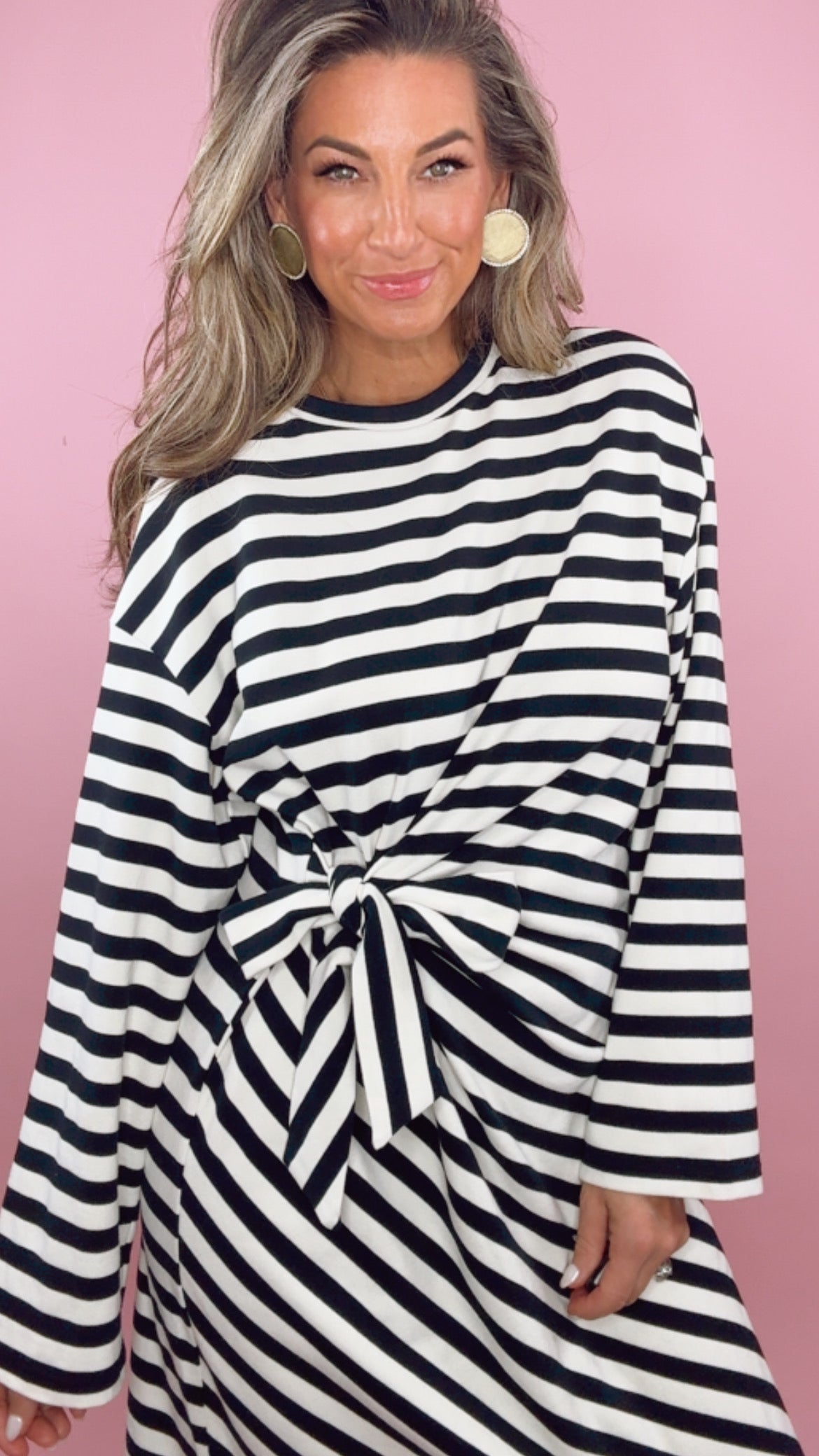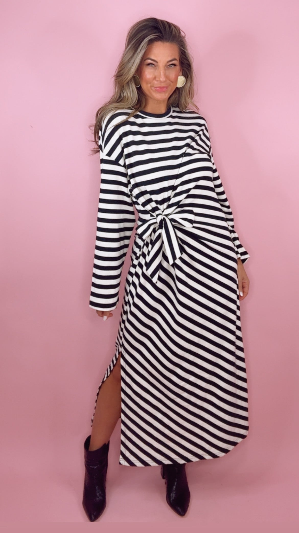 The Fenouil Dress from FRNCH Paris is your new go-to for effortless style. This maxi stunner features classic stripes that feel fresh and timeless, while the front knot tie adds a flirty touch that lets you adjust the fit to your vibe. Whether you're dressing it up for a night out or keeping it casual for weekend wandering, this dress delivers that perfect blend of chic and comfortable. Pure Parisian charm, no fuss required.