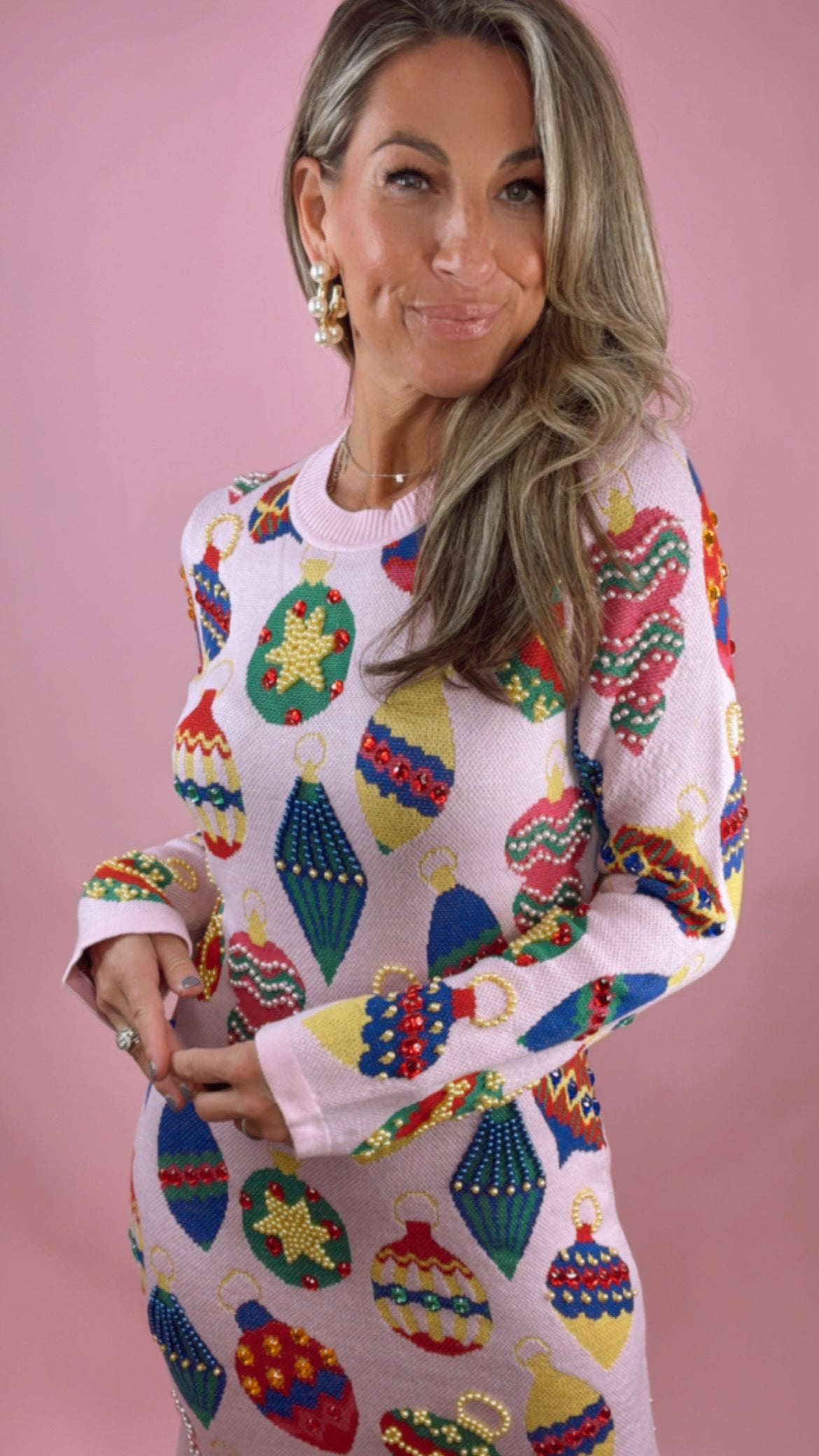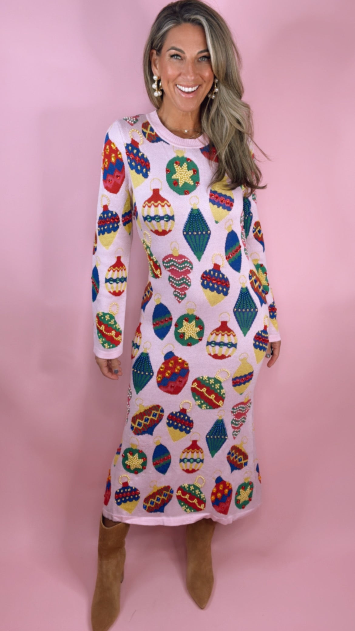 Queen of Sparkles Light Pink Multi Jeweled Ornaments Knit Midi Dress