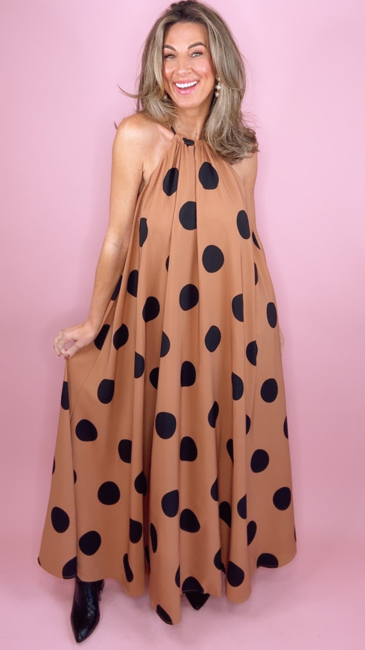 Endless Rose Polka Dot Halter Neck Maxi Dress