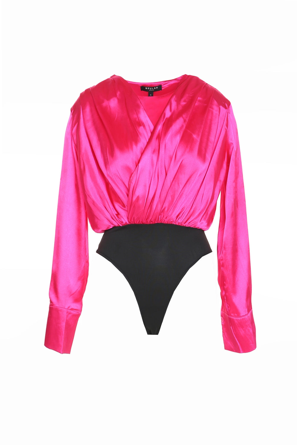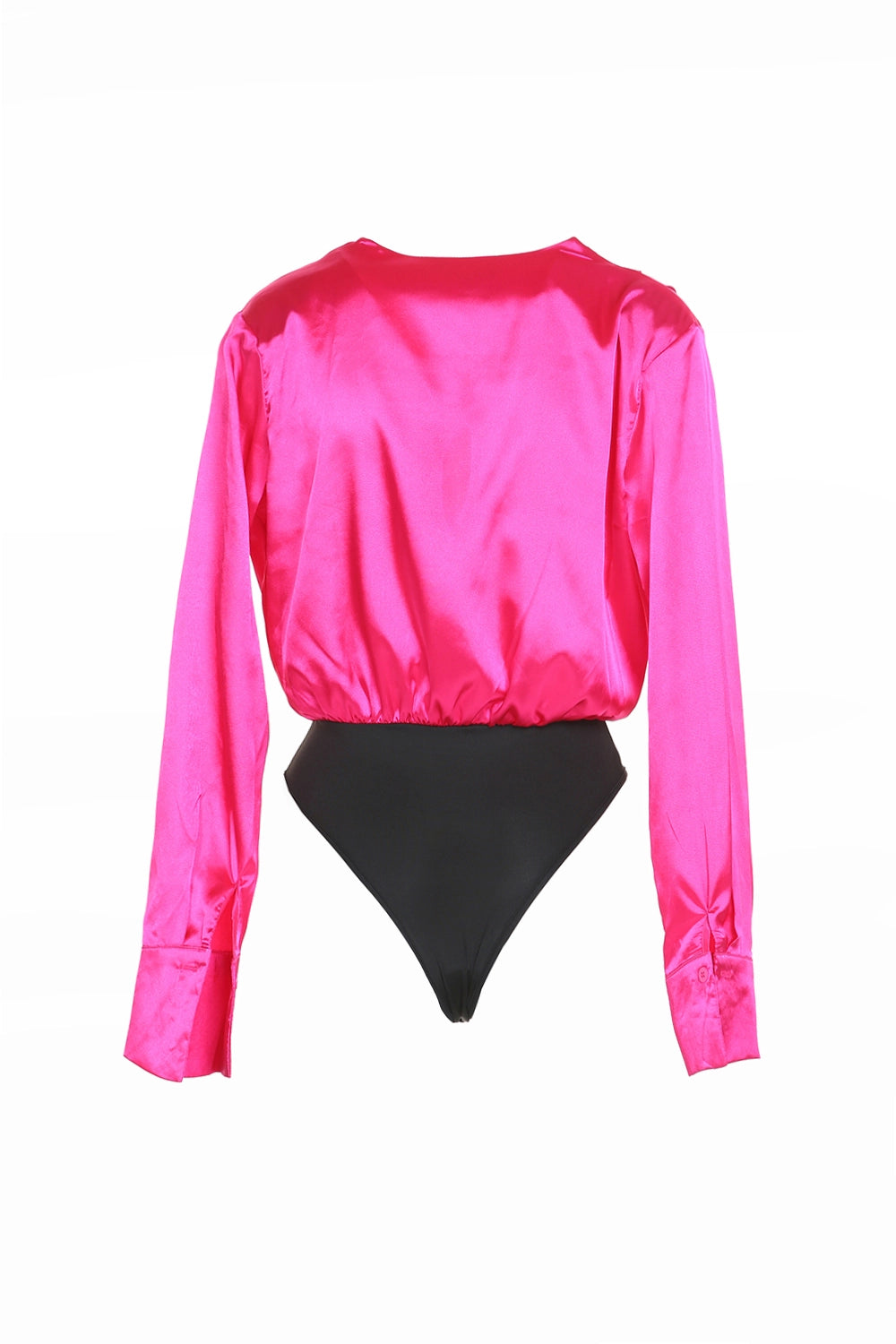 Satin V-Neck Wrap Bodysuit Satin fabric V-neck wrap Long sleeves Bodysuit Regular fit Imported Model is 5' 9" wearing a Small size Caring for your clothes is caring for the environment Wash your clothes with lower temperature and delicate spin cycles. It helps to maintain the color, shape and structure of the fabric. At the same time it reduces energy consumption that is used in care processes