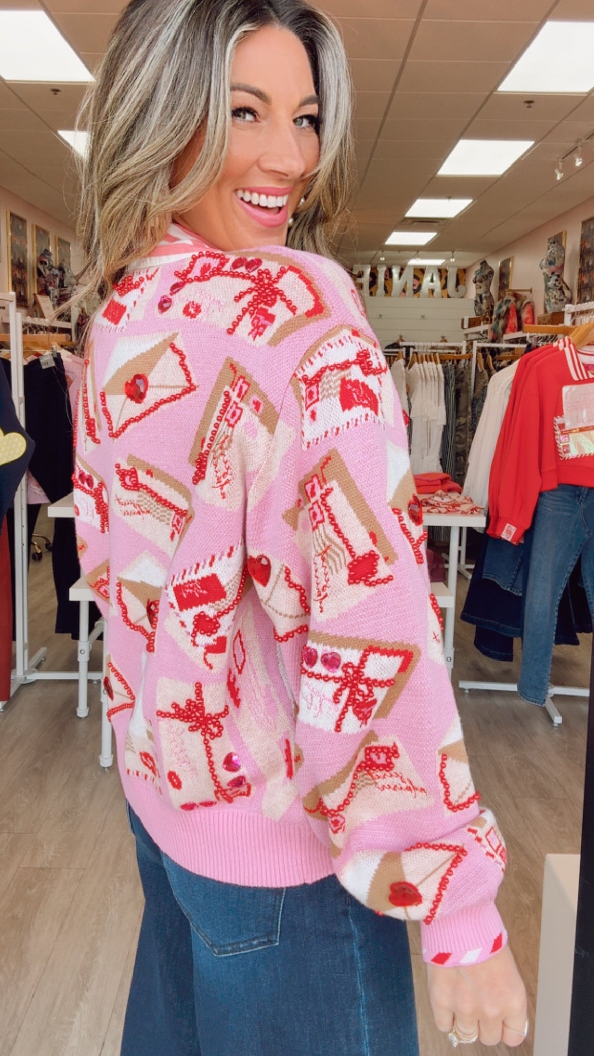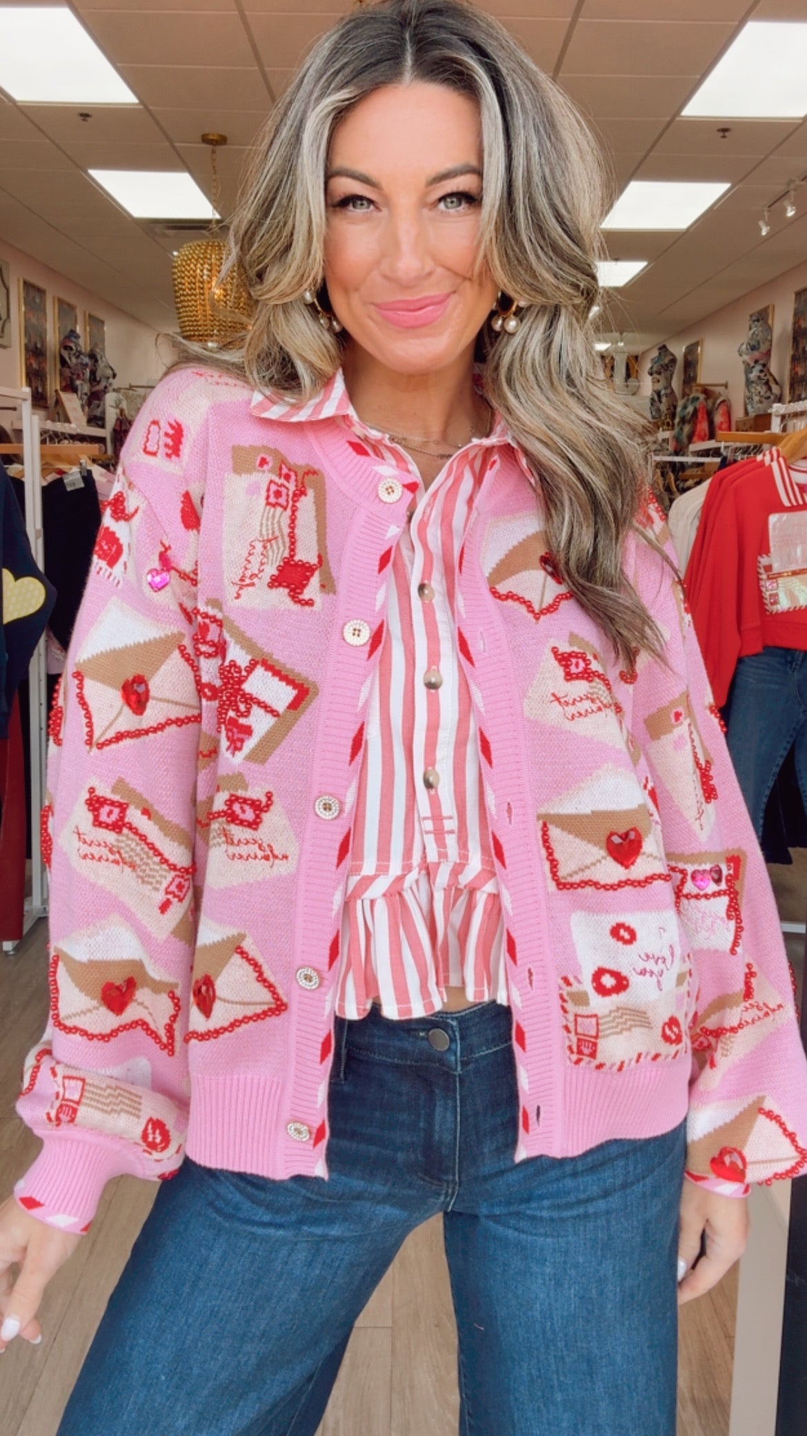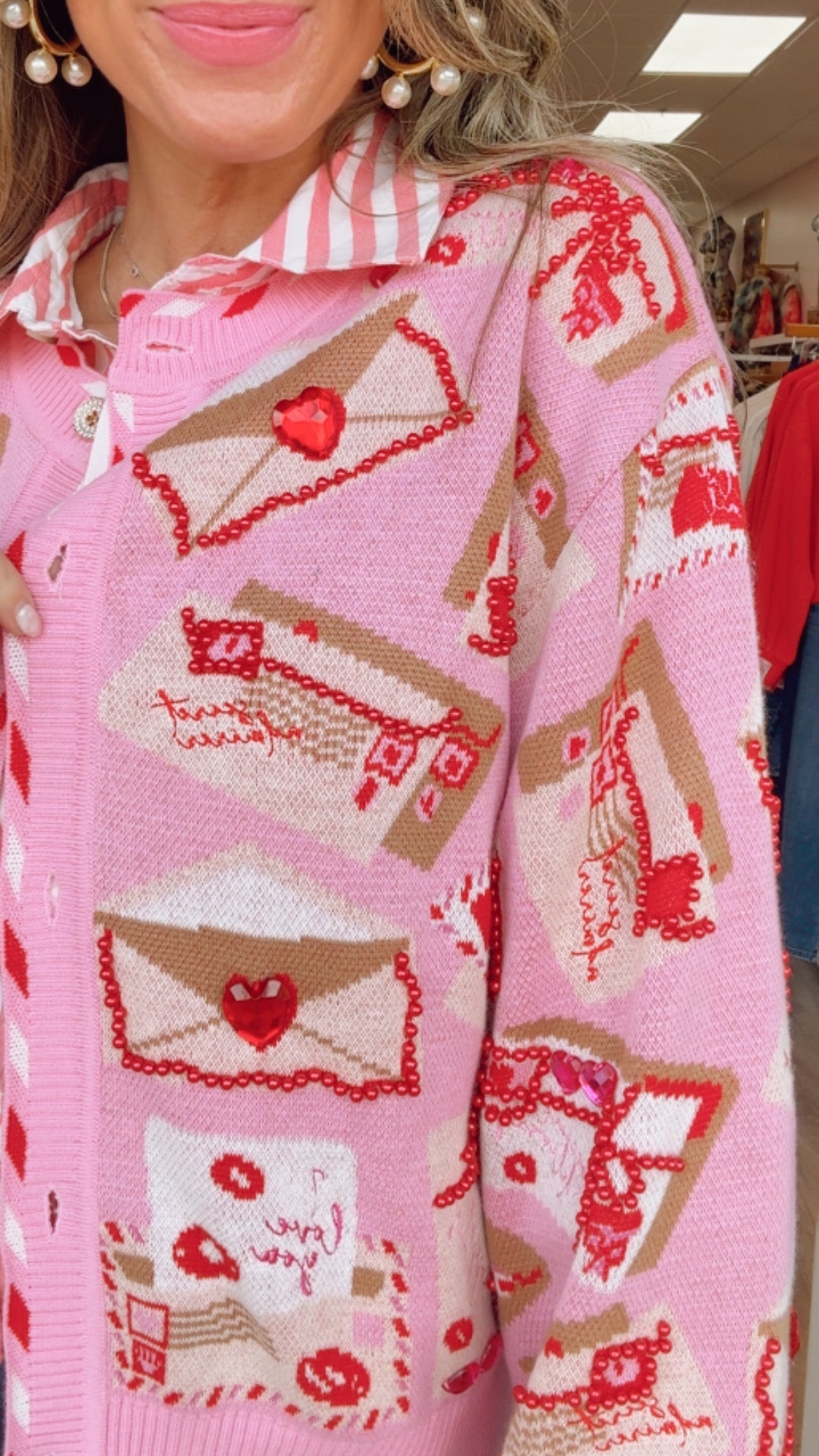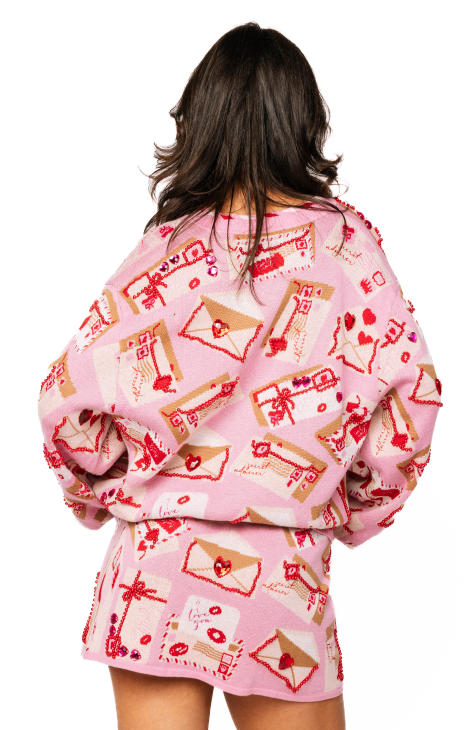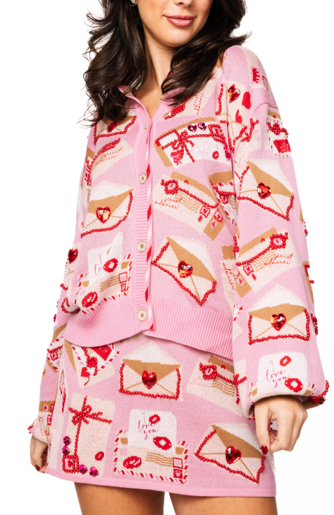 Queen of Sparkles Pink Love Letters Button-Up Knit Cardigan
