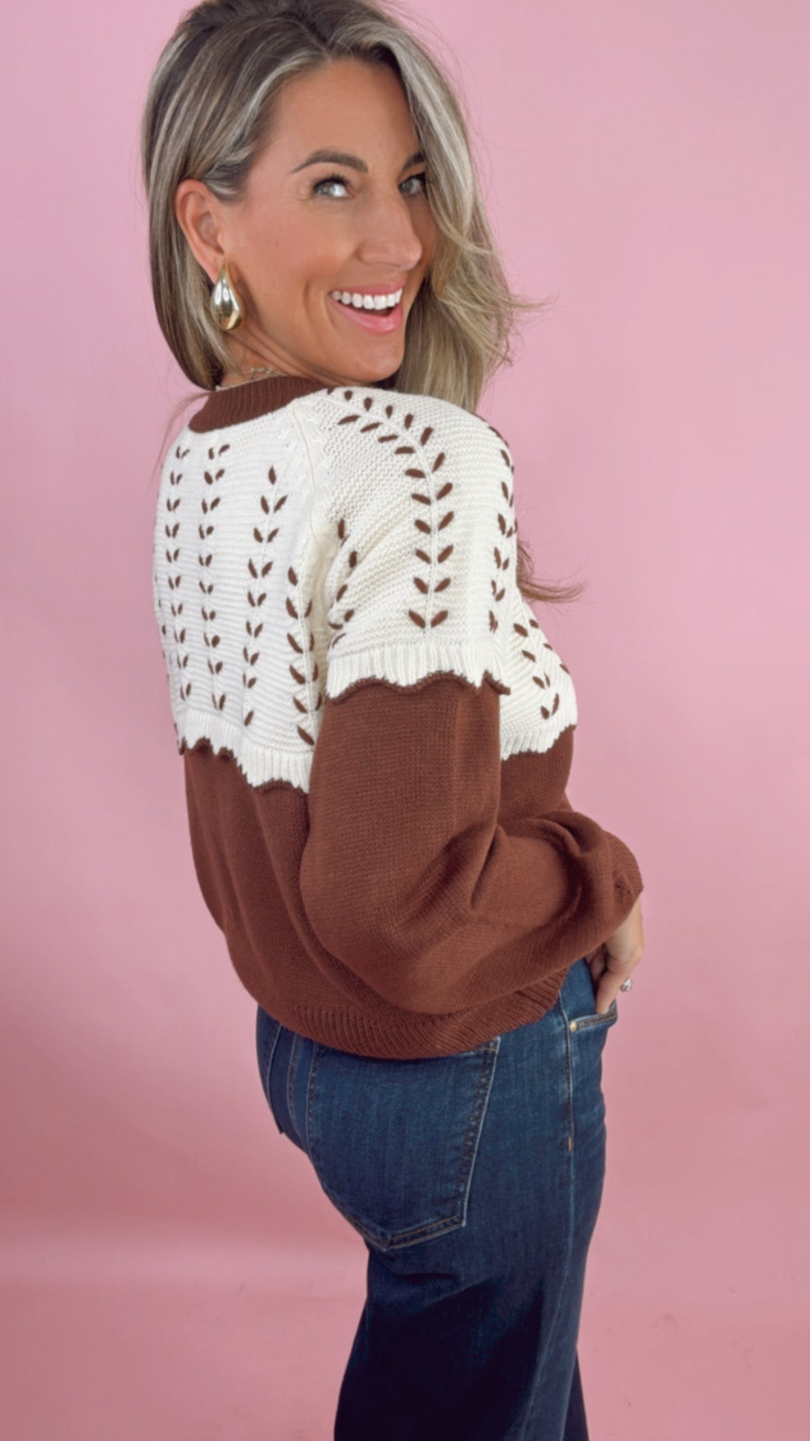 Chocolate Colorblock Scallop Detail Knit Cardigan