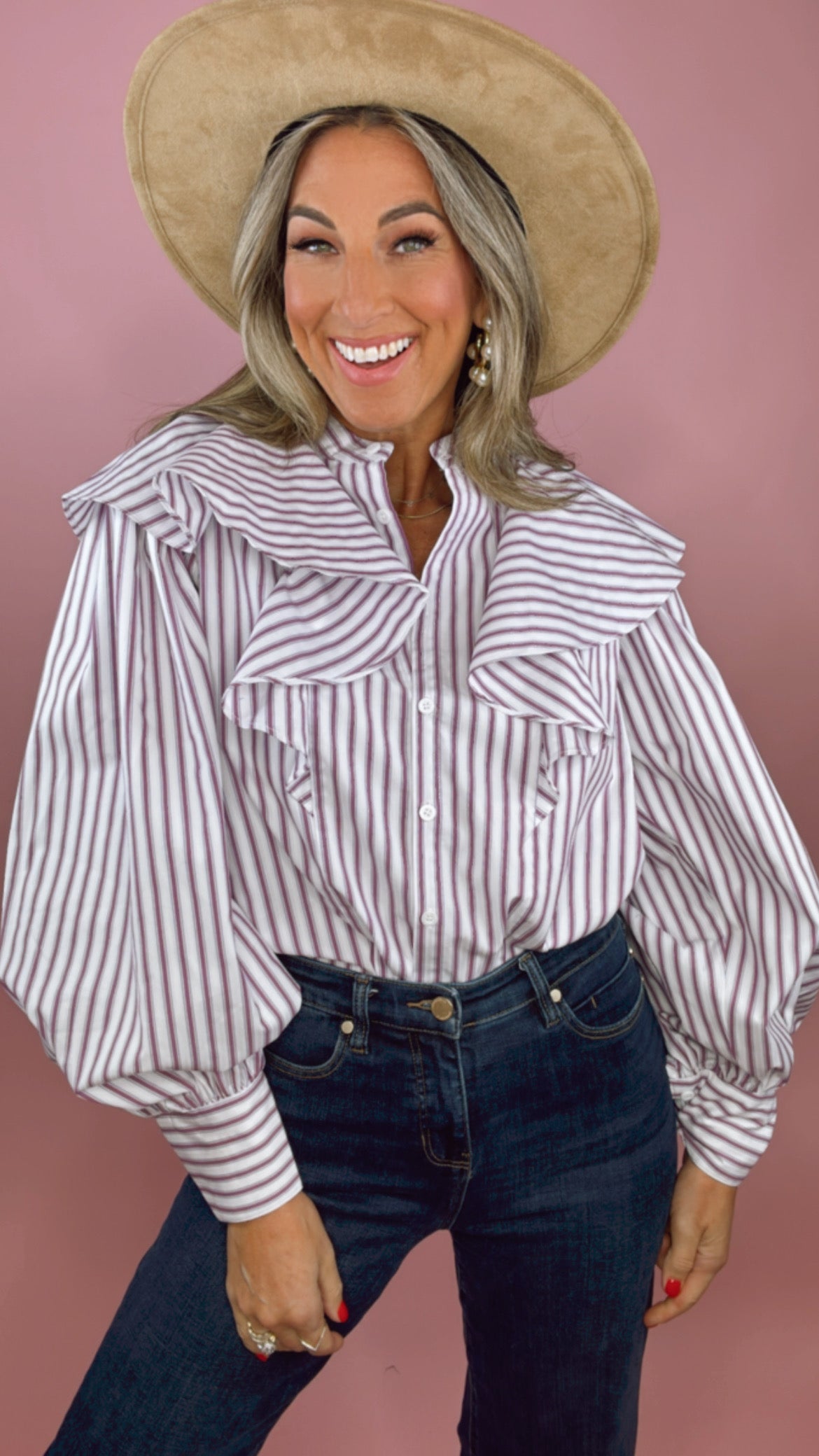 FRNCH Achillee Violet Stripe Ruffle Shirt