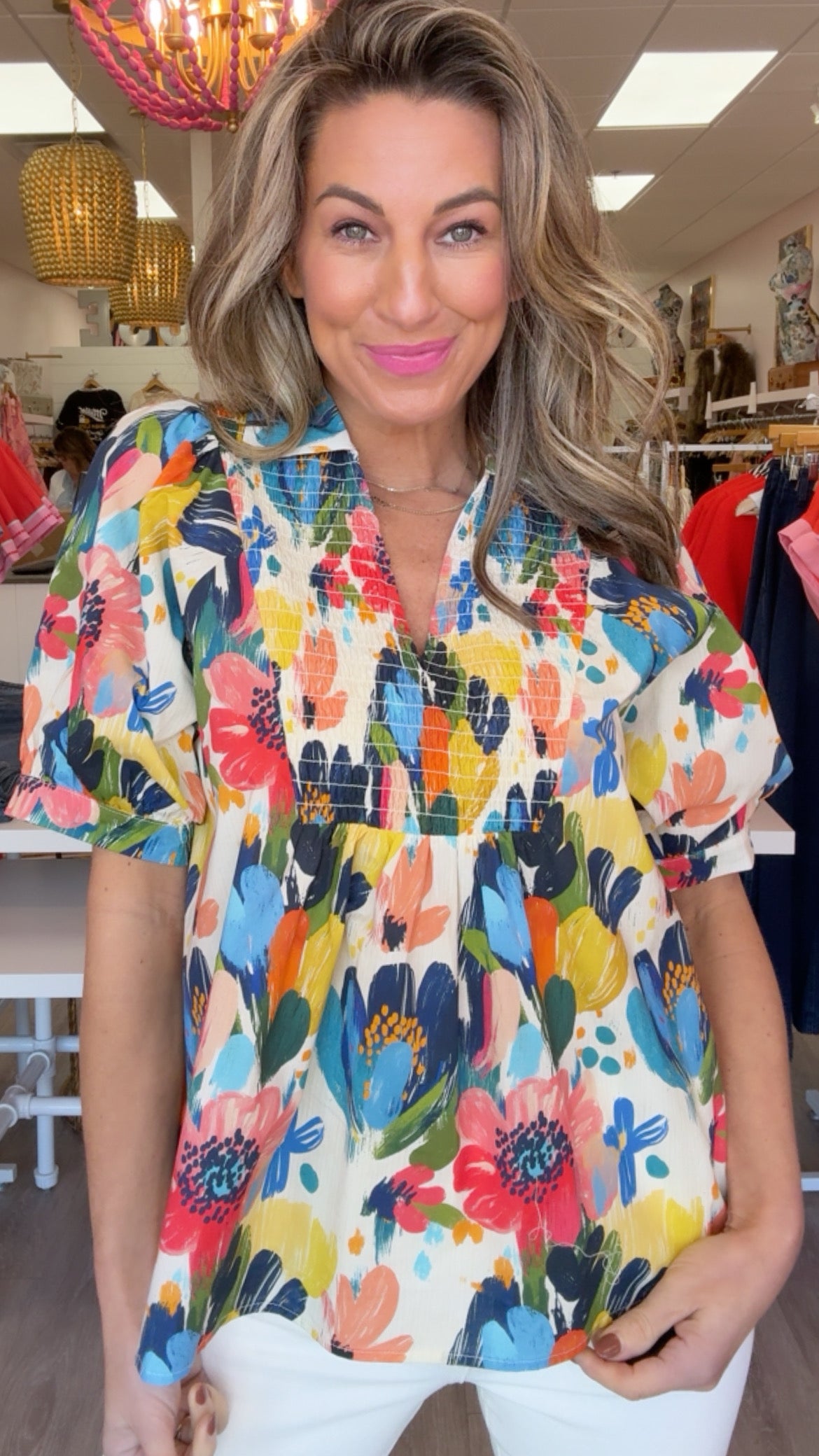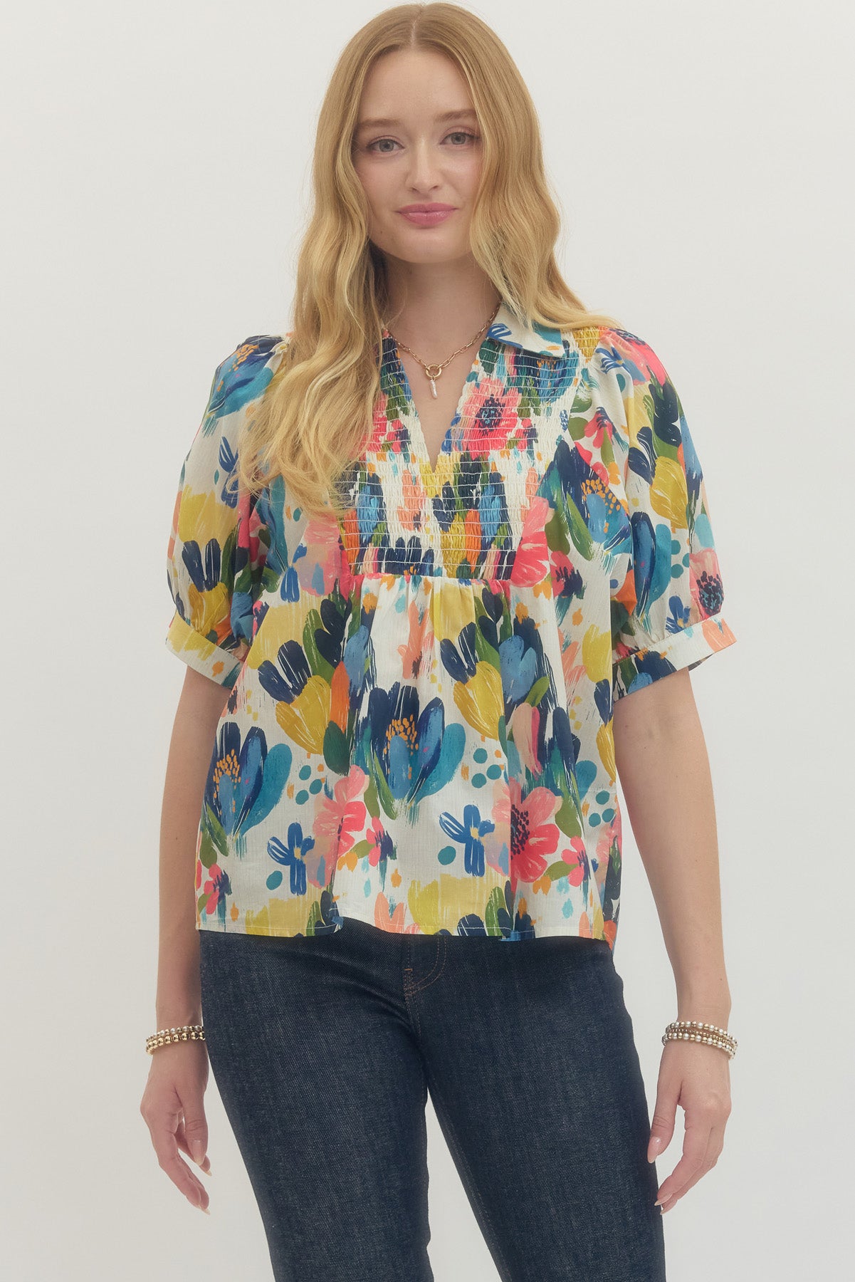 Smocked Bust Floral Top